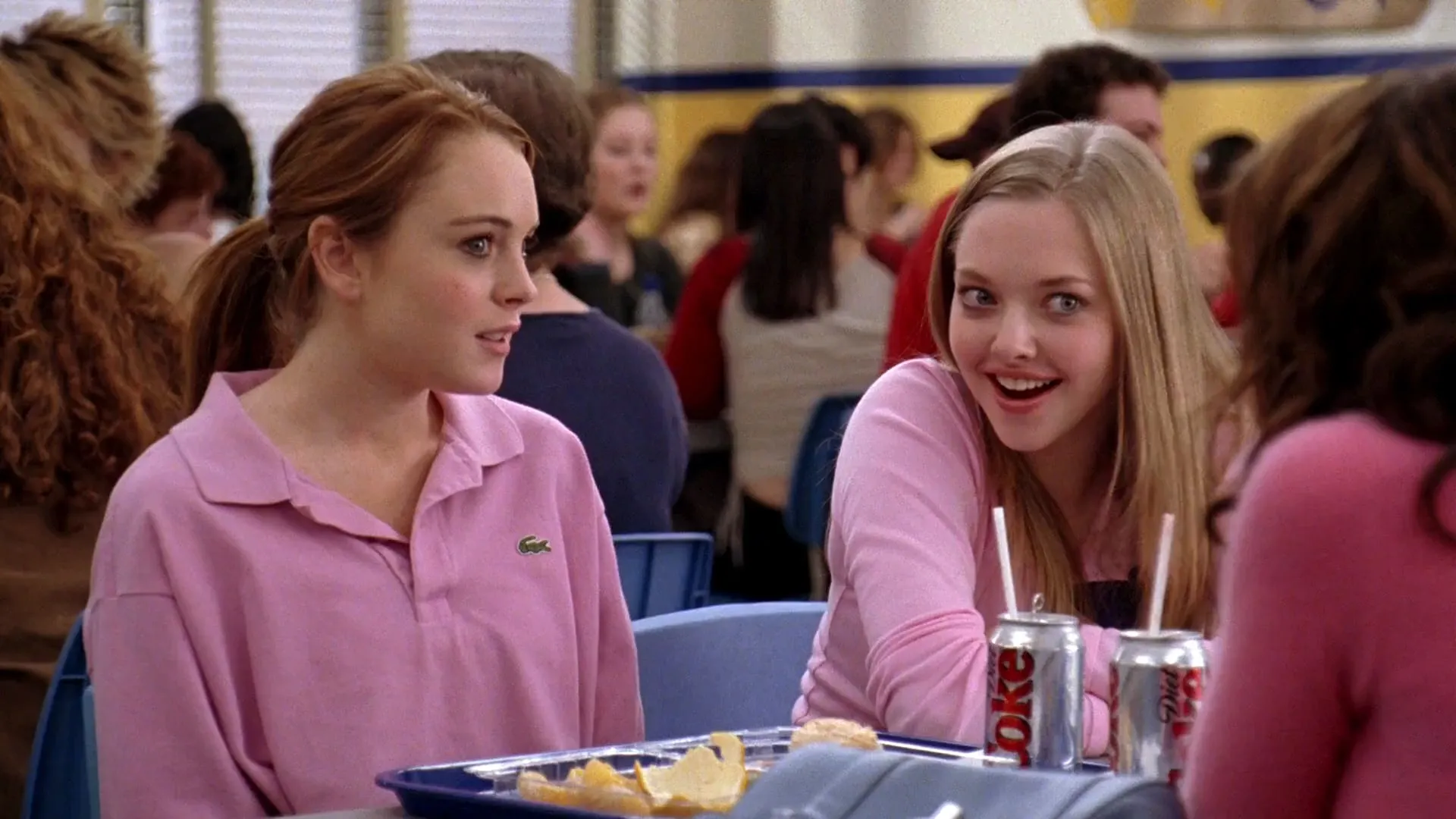 Cast: Lindsay Lohan as Cady Heron, Rachel McAdams as Regina George, Lacey Chabert as Gretchen Wieners, Amanda Seyfried as Karen Smith, Lizzy Caplan as Janis Ian, Daniel Franzese as Damian Leigh, Tina Fey as Sharon Norbury, Jonathan Bennett as Aaron Samuels, Tim Meadows as Principal Duvall, Amy Poehler as June George, Ana Gasteyer as Betsy Heron, Neil Flynn as Chip Heron, Rajiv Surendra as Kevin Gnapoor, Elana Shilling as Spelling Girl, Graham Kartna as Homeschooled Boy, Ely Henry as Homeschooled Boy, David Aherne as Homeschooled Boy, Ayo Agbonkpolo as African Warrior, Molly Shanahan as Kristen Hadley, Jonathan Malen as Kristen Hadley's Boyfriend, Jeff Moser as Farting Guy, Miranda Edwards as Michigan Girl, Les Porter as Chemistry Teacher, Eve Crawford as English Teacher, Jack Newman as History Teacher, Michelyn Emelle as Music Teacher, Bathsheba Garnett as German Teacher, Ky Pham as Trang Pak, Danielle Nguyen as Sun Jin Dinh, Daniel DeSanto as Jason, Alisha Morrison as Lea Edwards, Chris Anton as Huge Guy, Dwayne Hill as Coach Carr, Diego Klattenhoff as Shane Oman, Jan Caruana as Emma Gerber, Wai Choy as Tim Pak, Julia Chantrey as Amber D'Alessio, Jacky Chamberlain as Giselle Sgro, Olympia Lukis as Jessica Lopez, Stefanie Drummond as Bethany Byrd, Kristen Bone as Short Girl, Jessie Wright as Five-Year-Old Cady, Tyson Fennell as Nfume, Stephan Dickson as Animal Dancer, Andreja Punkris as Animal Dancer, Noelle Boggio as Animal Dancer, Jordan Dawe as Animal Dancer, Alexandra Stapley as Taylor Wedell, Laura de Carteret as Mrs. Wedell, Nicole Crimi as Kylie George, Erin Norah Thompson as Dawn Schweitzer, Dan Willmott as Mr. George, Michelle Hoffman as Kissing Girl, Valerie Casault as Kissing Girl, Sharron Matthews as Joan, Jo Chim as Salesperson, Randi Lee Butcher as Skater Girl, Erin Jarvis as Skater Girl, Kaylen Christensen as Jock Girl, Jill Morrison as Crying Girl, David Sazant as Marymount Captain, Clare Preuss as Caroline Krafft, Bruce Hunter as Mathlete Moderator, Megan Millington as Junior Plastic, Tara Shelley as Junior Plastic, Shannon Todd as Junior Plastic, David Reale as Glenn Coco (uncredited), Krysta Carter as Wannabe (uncredited)