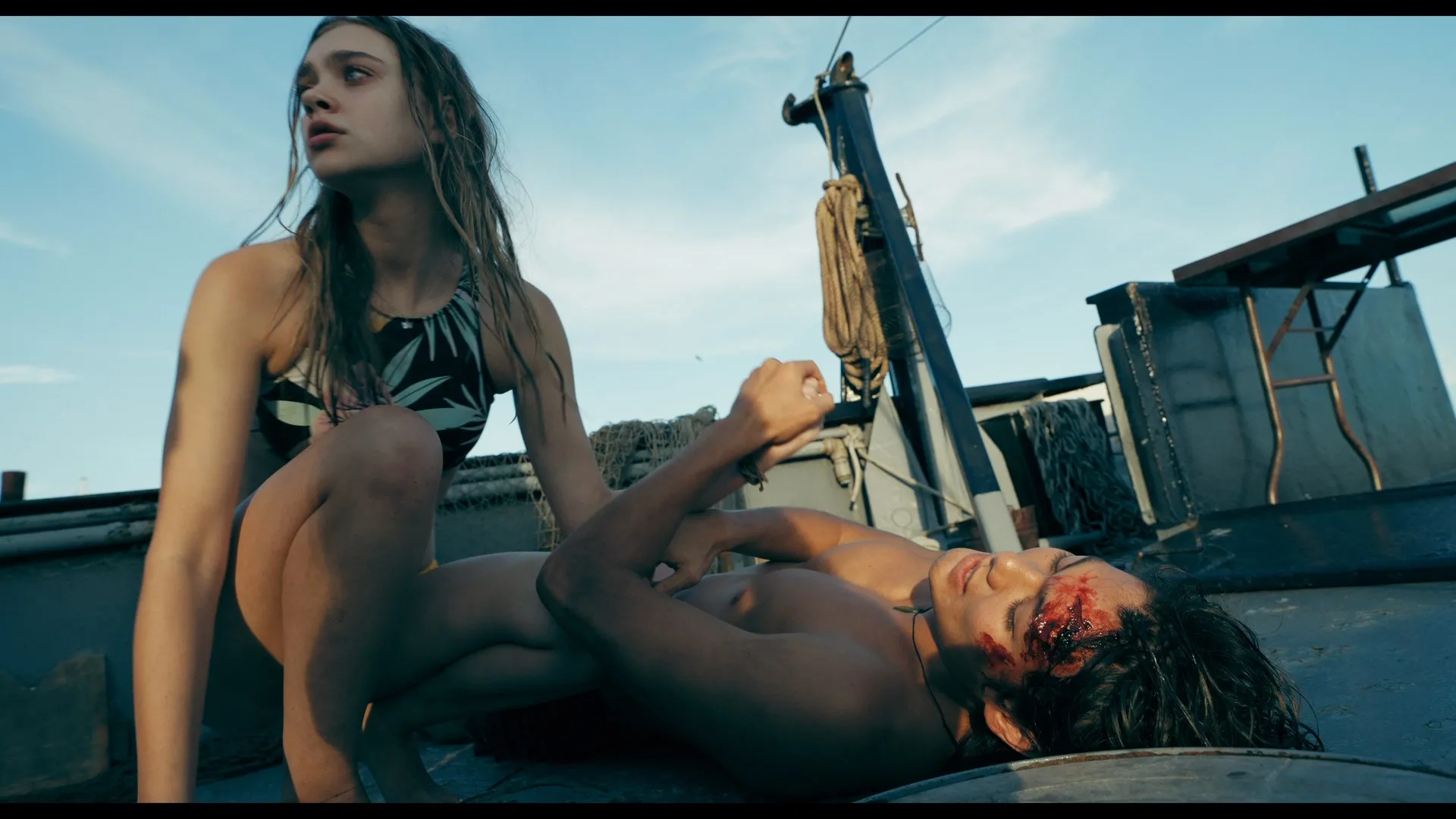Stranded in the open sea after a fatal accident, a young woman and her two friends are rescued by a fishing vessel's captain, unaware that the ship harbors a chilling secret.